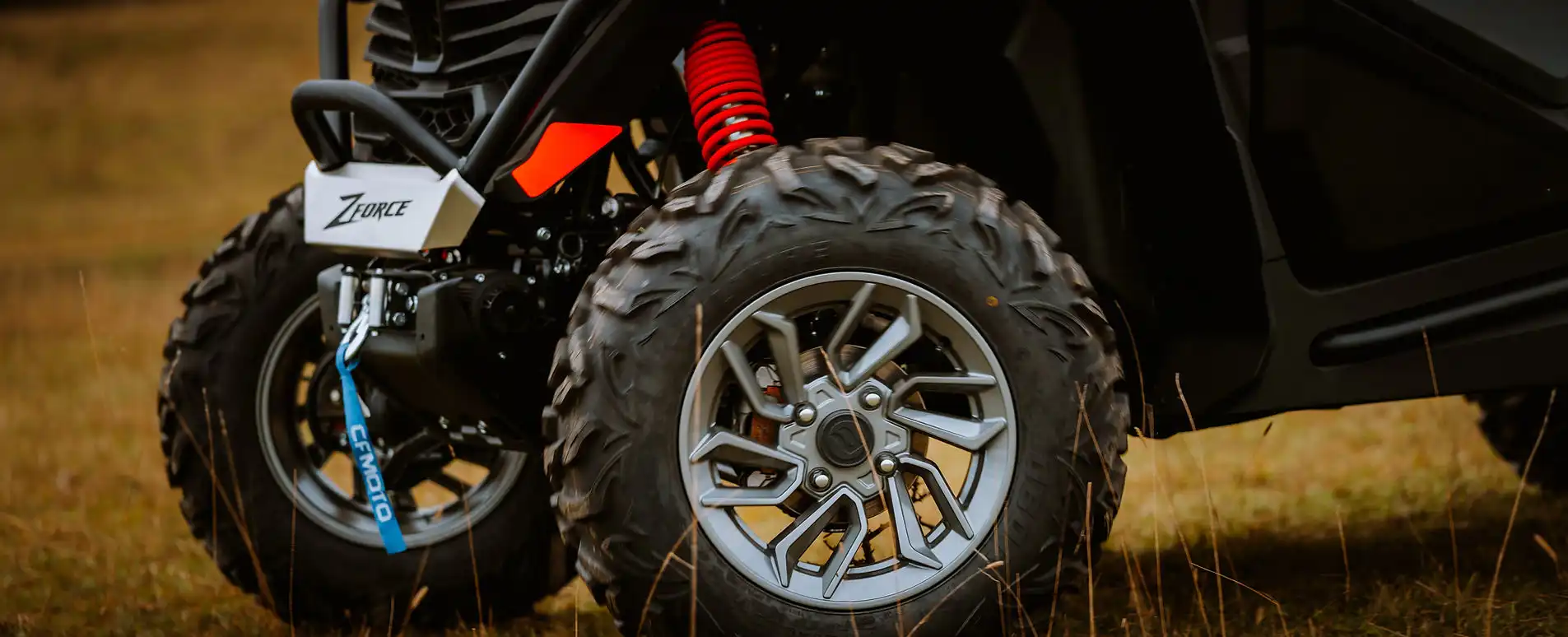 El ZFORCE 950 Sport está equipado con llantas de 27” montadas en rines de aluminio, brindando mayor agarre y durabilidad. Suspensiones de doble brazo en A independientes (delantera y trasera), con amortiguadores de gas Piggyback ajustables en 3 posiciones, absorben el terreno con facilidad y mejoran el confort en trayectos largos o técnicos. Además, incorpora frenos de disco en las 4 ruedas con un sistema hidráulico de alto rendimiento, volante ajustable y dirección electrónica asistida para una conducción precisa en todo momento.