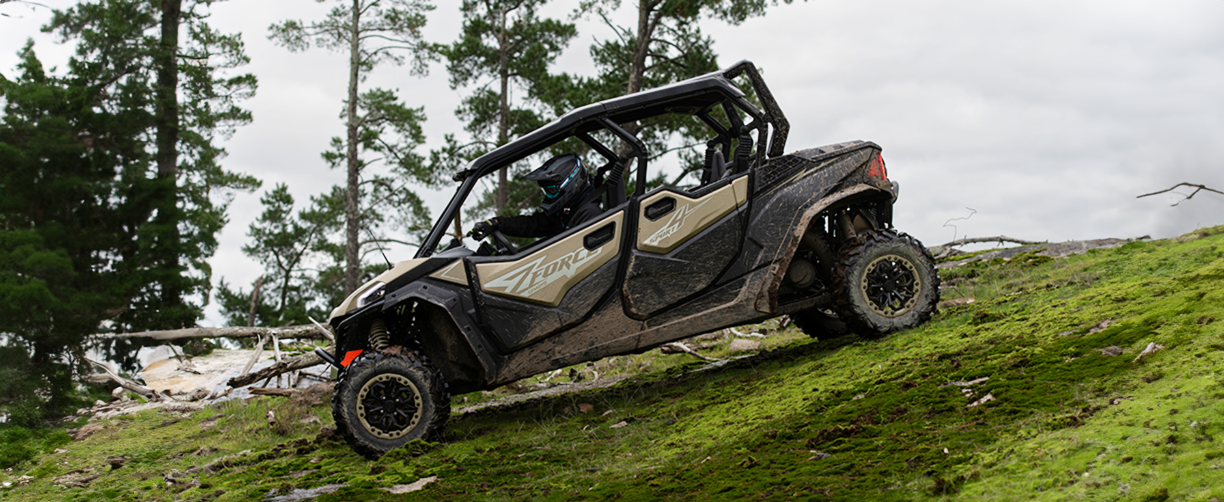 Rendimiento, confort de primera clase y gran valor son las señas de identidad del nuevo ZFORCE. Perfecto para el aventurero moderno que busca descubrir los confines de la Madre Tierra. Con una fuerte presencia y una silueta aerodinámica, ZFORCE 950 SPORT-4 mantiene los potentes diseños dinámicos de sus predecesores. El chasis se ha reajustado y alargado para acomodar a cuatro pasajeros con un estilo de primera clase.