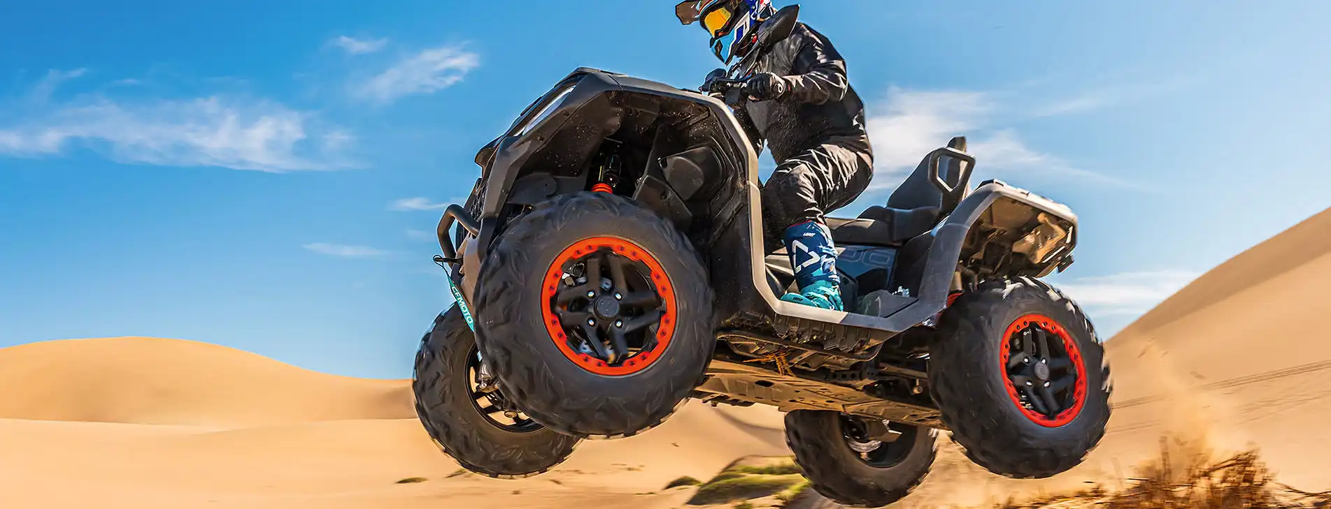 Ahora con un 35% más de recorrido de suspensión y un ángulo de giro 17% más cerrado, la suspensión delantera de doble brazo en A y la trasera de brazo basculante independiente ofrece mejores prestaciones manteniendo una conducción más suave incluso en los terrenos muy difíciles. Con amortiguadores totalmente ajustables, podrás personalizarla totalmente para adaptarla a tus necesidades, ya sea con cargas más ligeras o para viajar con pasajero.